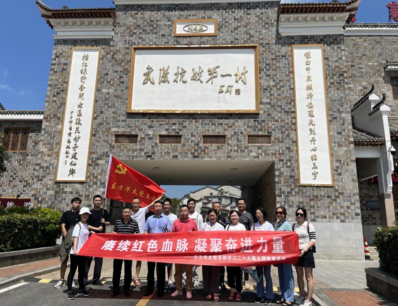2023年8月5日,黨支部結合企業特點和支部工作安排,認真落實黨支部主題黨日“5+N”模式,創新黨史學習教育載體,組織全體黨員、入黨積極分子代表等前往武漢抗戰第一村---姚家山新四軍第五師機關舊址紅色教育基地,開展“賡續紅色血脈 凝聚奮進力量”學習二十大暨主題“沉浸式”紅色教育活動。以“行走黨課”作為理論研習的重要載體,通過大家喜聞樂見的方式推進偉大建黨精神內化于心、外化于行,共同締造出了“可見”、“可讀”、“可聽”的行走路線。感受革命奮斗歷程,傳承紅色基因,營造見賢思齊、比學趕超的濃厚氛圍。