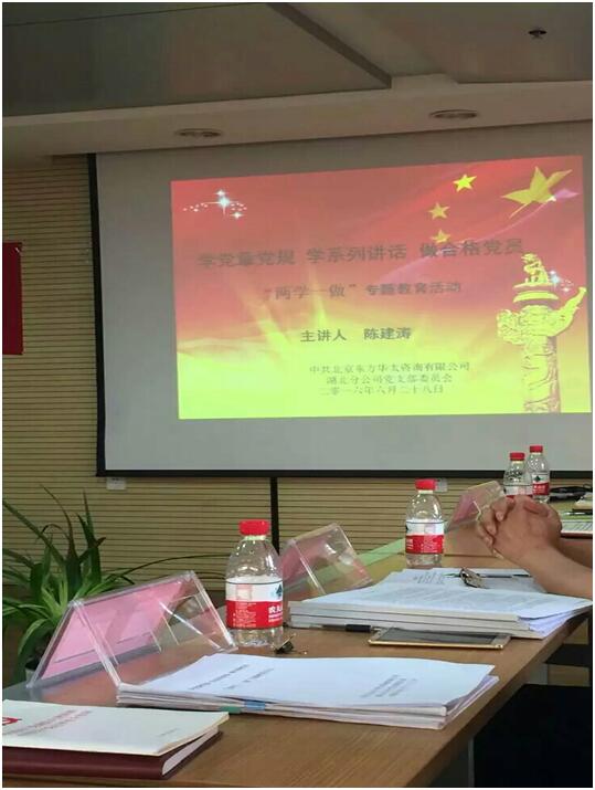 2016年 6月28日,東方華太公司為迎接"中國共產黨成立95周年",公司黨支部召集全體正式黨員﹑預備黨員﹑入黨積極分子代表﹑青年團員代表歡聚一堂開展了一次形式莊嚴、內容豐富的迎"七一"建黨95周年黨員主題日暨開展"兩學﹑一做"專題教育活動大會。按照大會擬定議程的第一部分,會議主持人黨支部書記陳建濤同志宣布到會黨員人數符合程序要求,會議有效。