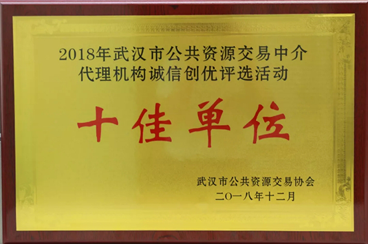 ——熱烈祝賀東方華太公司榮獲武漢市2018年度公共資源交易中介代理機構誠信創優十佳單位稱號