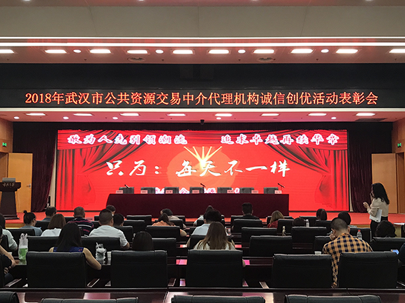 2019年6月19日,武漢市公共資源交易協會在“市民之家”市民大講堂召開了2018年度武漢市公共資源交易中介代理機構“誠信創優活動”優勝單位表彰大會。市公共資源交易管理局相關領導、協會、各中介代理機構負責人等出席會議。會上,市公共資源交易協會會長黃澤旺同志宣讀《關于表彰2018年度武漢市公共資源交易中介代理機構誠信創優活動優勝單位的決定》。