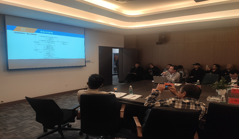 在參觀實體生產后各單位代表開展了技術交流會。交流會先以三個視頻短片介紹了裝配式建筑施工流程為開始,然后美好裝配武漢設計院院長李政詳細介紹了裝配式發(fā)展、美好裝配式施工工藝流程、美好裝配技術體系優(yōu)點等,北京東方華太美好項目總監(jiān)李晨介紹了在美好項目監(jiān)理過程中預制構件驗收、安裝驗收質量控制、安全控制等情況,而后各參會代表就裝配式驗收、檢測等裝配發(fā)展中難點問題進行了熱烈討論。